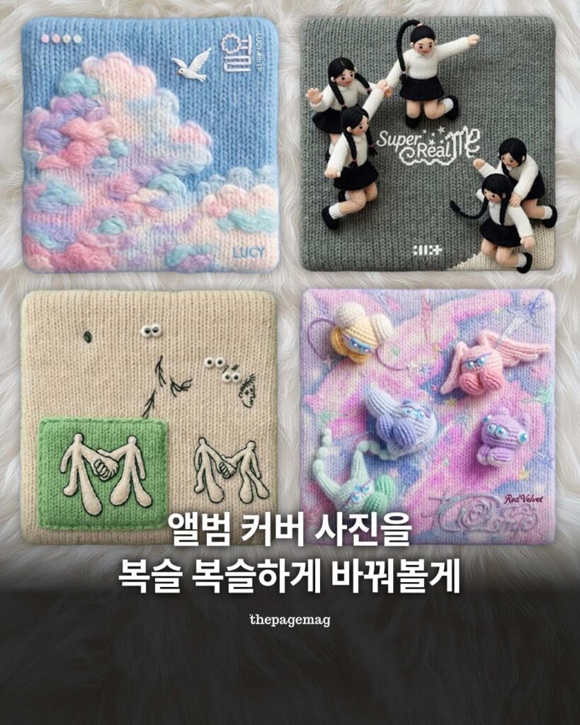 요즘 핫한 ‘뽀글 앨범 커버’, 직접 만들어봤어요🧶 늘 좋아하던 앨범 커버를 복슬복슬하게 바꿔보니, 익숙한 이미지도 훨씬 더 귀엽고 따뜻하게 다가오더라고요. 포근한 감성 한 스푼, 앨범 커버에 담아보는 …